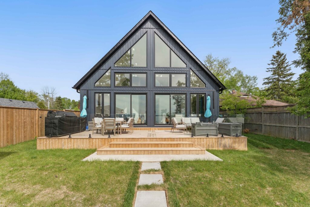 Custom lakefront home in Thorah Park, Beaverton featuring a 4-bedroom luxury cottage and oversized boathouse. Delivered through full-service construction management, including waterfront permitting and shoreline compliance.